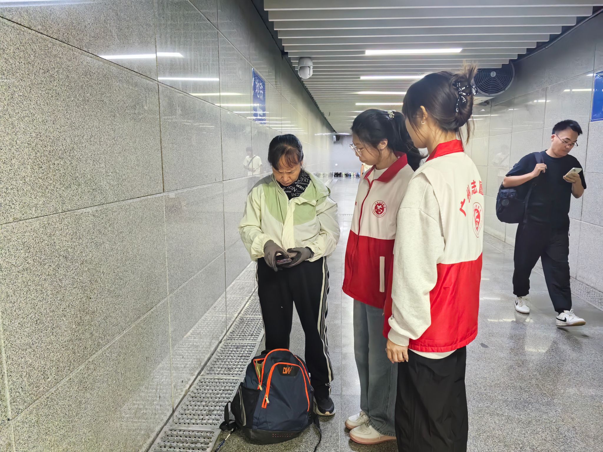 前期,学校组织了系统化的专项培训,围绕服务礼仪、应急处理、岗位规范等内容,全面夯实志愿者的服务基础。活动期间,在广场城市志愿服务站,志愿者们化身“活地图”和“讲解员”,耐心解答路线咨询,热情介绍特色景点,并贴心备好热水、应急药品等物资,用细致服务回应游客所需。