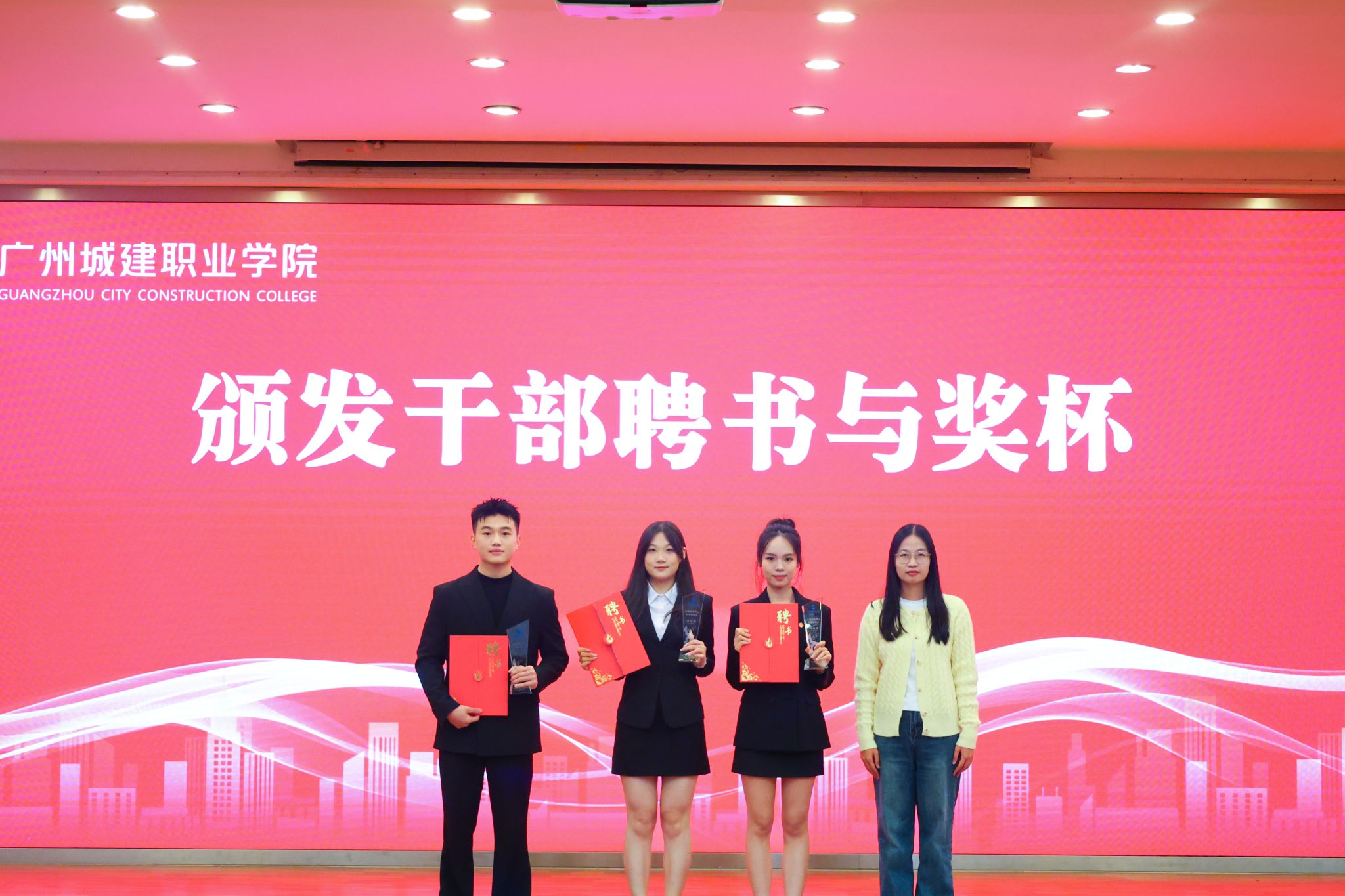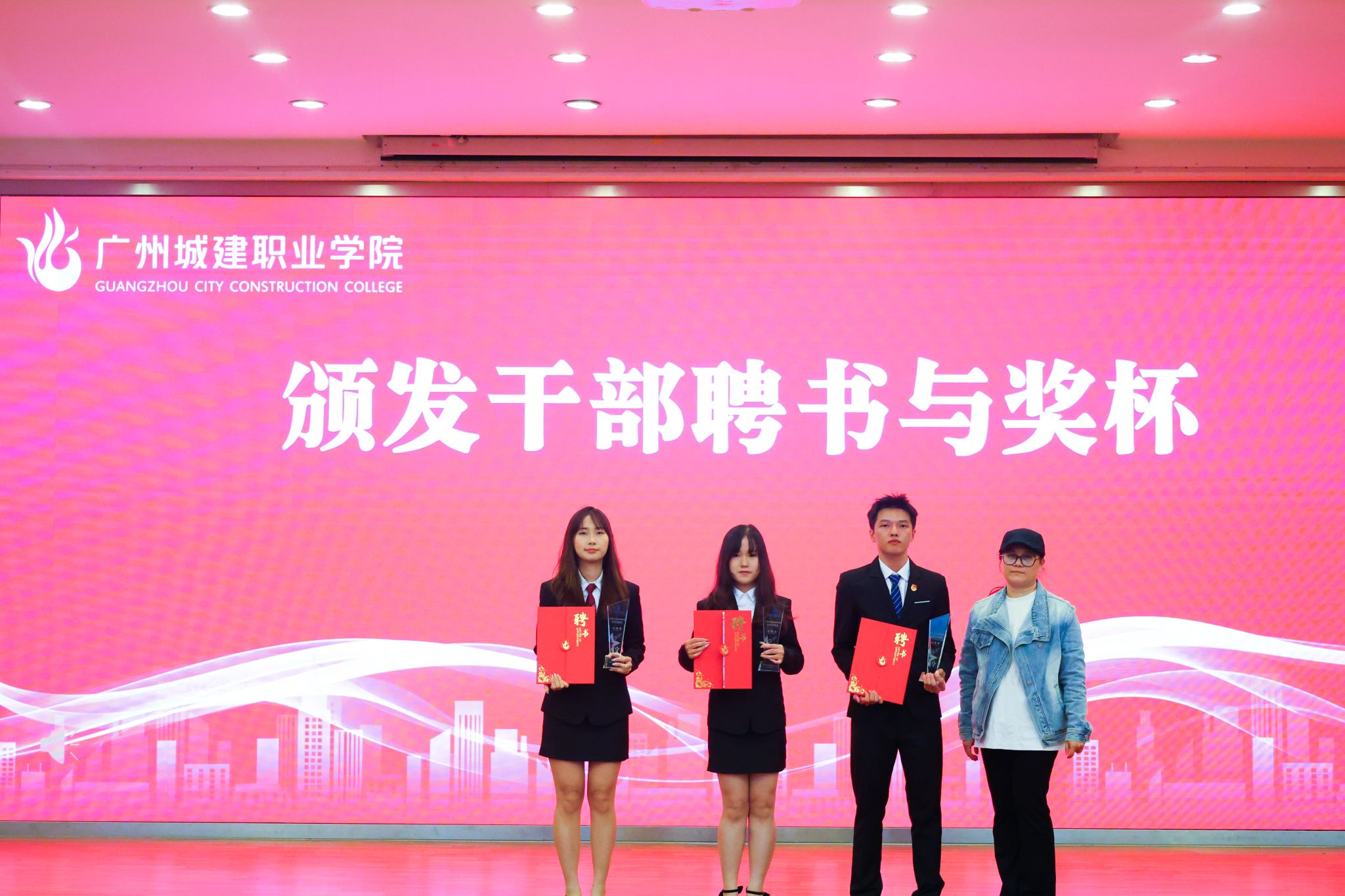 △黄得珠为校学生会和校团务中心干部颁发聘书和奖杯