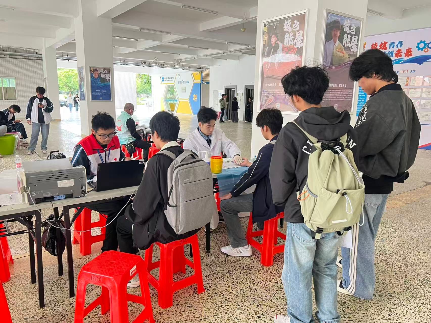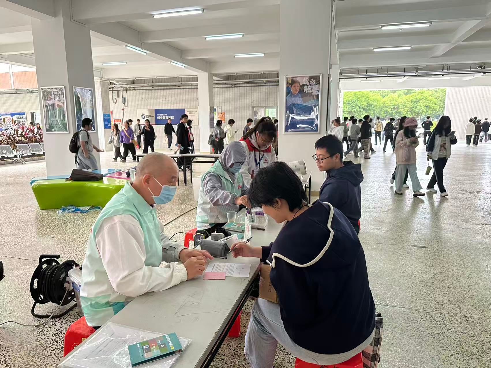 活动前期,学校红十字会学生分会通过校园海报、公众号等多种方式广泛宣传,普及献血知识,帮助师生了解献血意义与流程,有效缓解了大家的顾虑,营造了踊跃参与的良好氛围。活动期间,志愿者们全程协助从化血站医护人员开展工作,有序引导师生完成测温、填表、测血压等流程,并贴心准备了面包与葡萄糖水,为献血者提供细致温暖的服务。他们用行动表达了对每一位献血者的敬意与感谢。