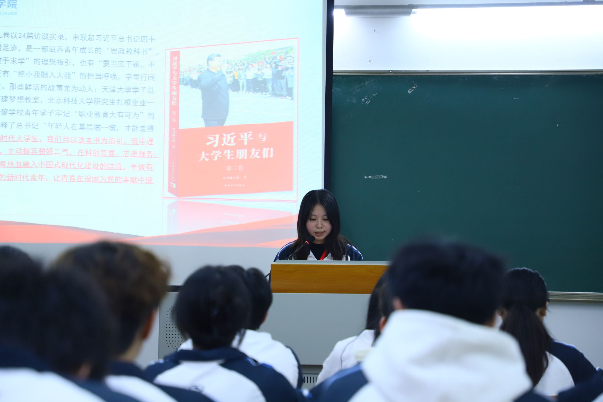 在随后的读书分享环节,支部成员围绕《习近平与大学生朋友们(第二卷)》一书展开交流。支部副书记余曼钰首先介绍了该书的框架与主旨,通过24篇访谈实录,系统展现了习近平总书记对青年一代的亲切关怀与殷切期望。书中“志存高远,敏于求学”的成长指引、“要当实干家”的实践要求,以及天津大学学子投身志愿服务等生动案例,引发了大家的深刻共鸣。支部成员结合学习、工作与生活实际,依次分享读书体会,探讨理论内涵的现实意义。现场交流热烈,既深化了思想认识,也进一步凝聚了情感与共识。