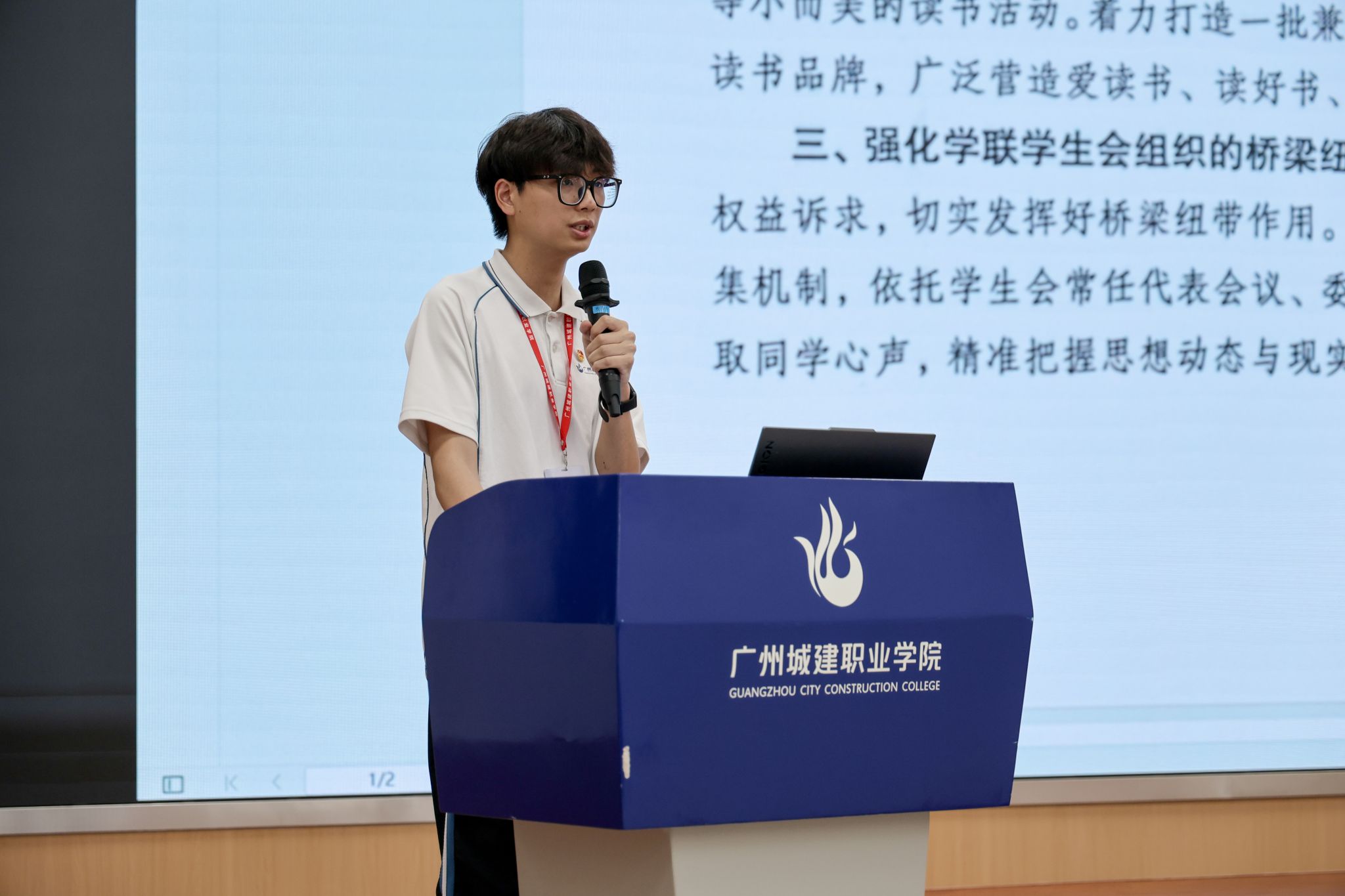 专题培训环节,覃艳雪、王文泽分别围绕“深入实施文明修身工程”与“发挥学生会服务职能”展开授课,寄语学生会全体成员以服务同学为宗旨,发挥“四个带头”作用,以身作则抓好学风建设、规范查课流程,提升工作能力与格局,真正解决同学问题,助力校园建设。