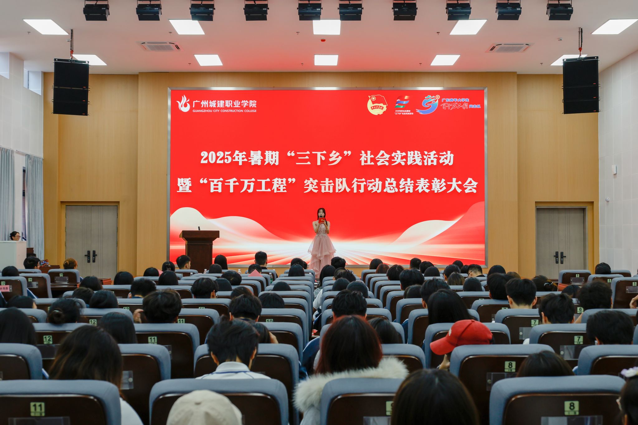 11月6日下午,我校2025年暑期“三下乡”社会实践活动暨“百千万工程”突击队行动总结表彰大会分别在广州校区人文艺术楼四楼报告厅、清远校区图书馆414报告厅同步举行。学校副校长、党委委员杨清国,校长助理、党委委员张双,党委委员、组织部部长、统战部部长吴辉军,团委书记兼党委学生工作部副部长甄伟文,学生处副处长、党委学生工作部副部长谭宇欣,学生处副处长曾德钦,各二级学院党组织副书记、副院长等学生工作负责人,校院团学指导老师以及获奖师生代表共同参与。