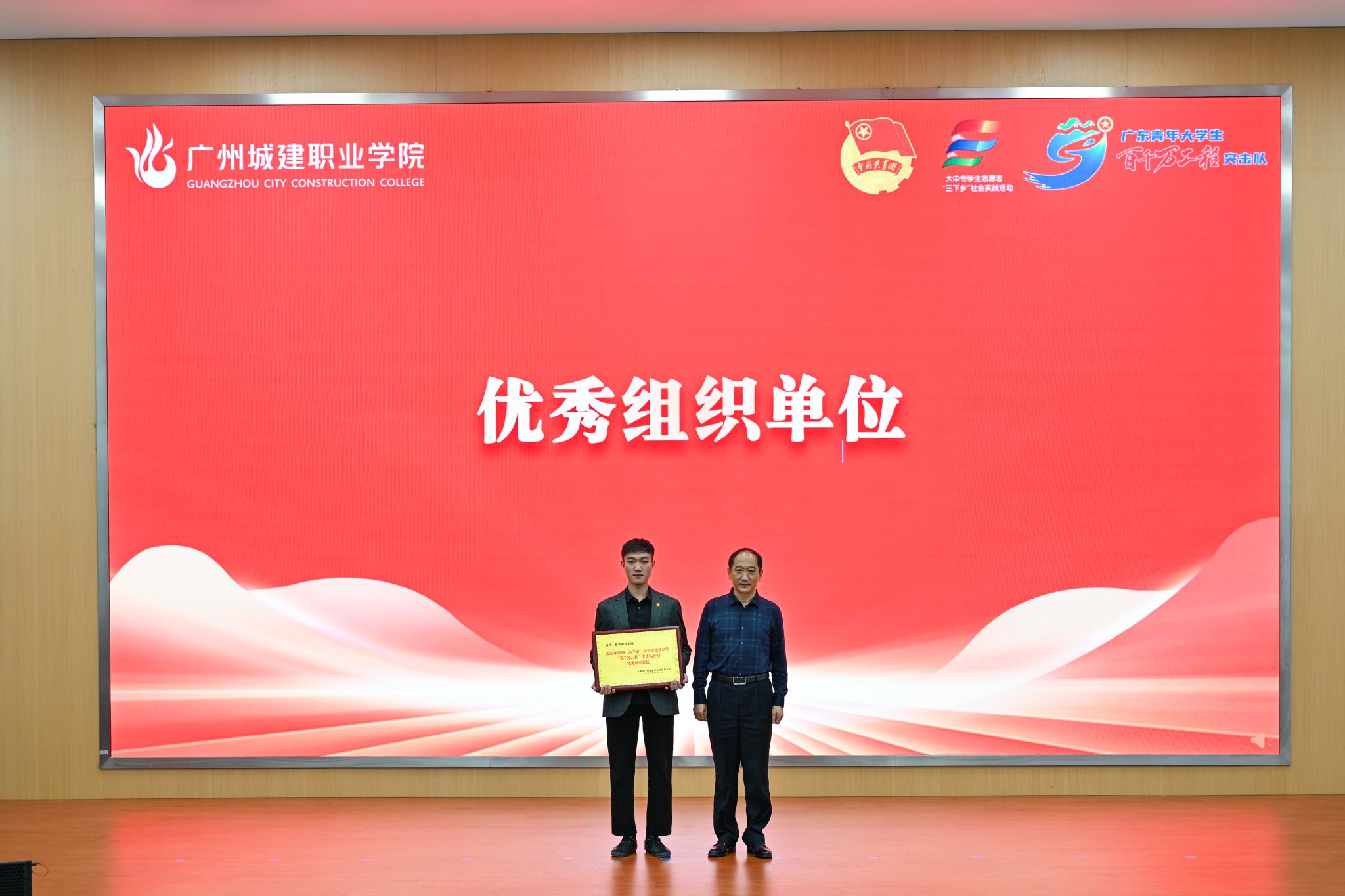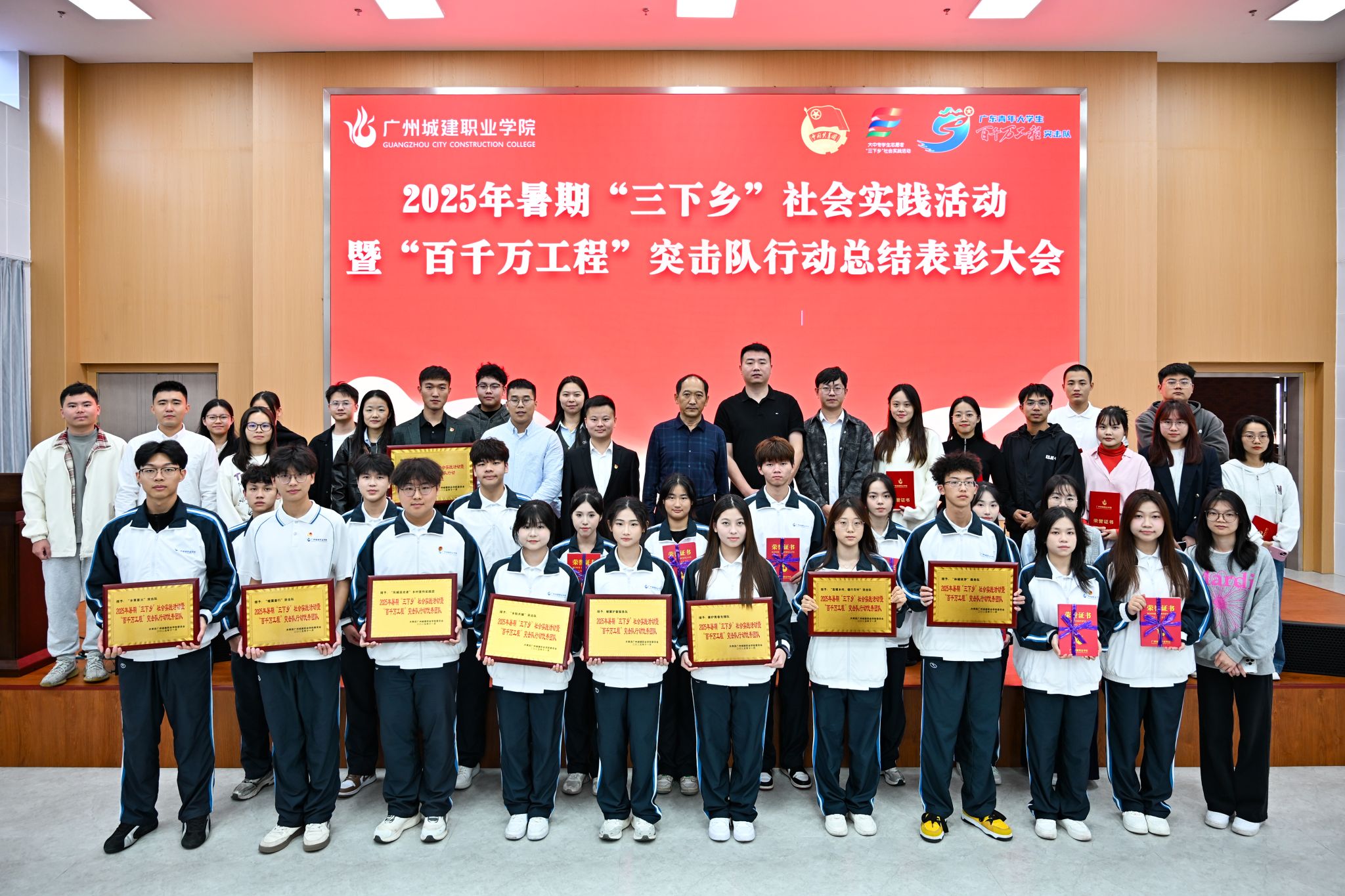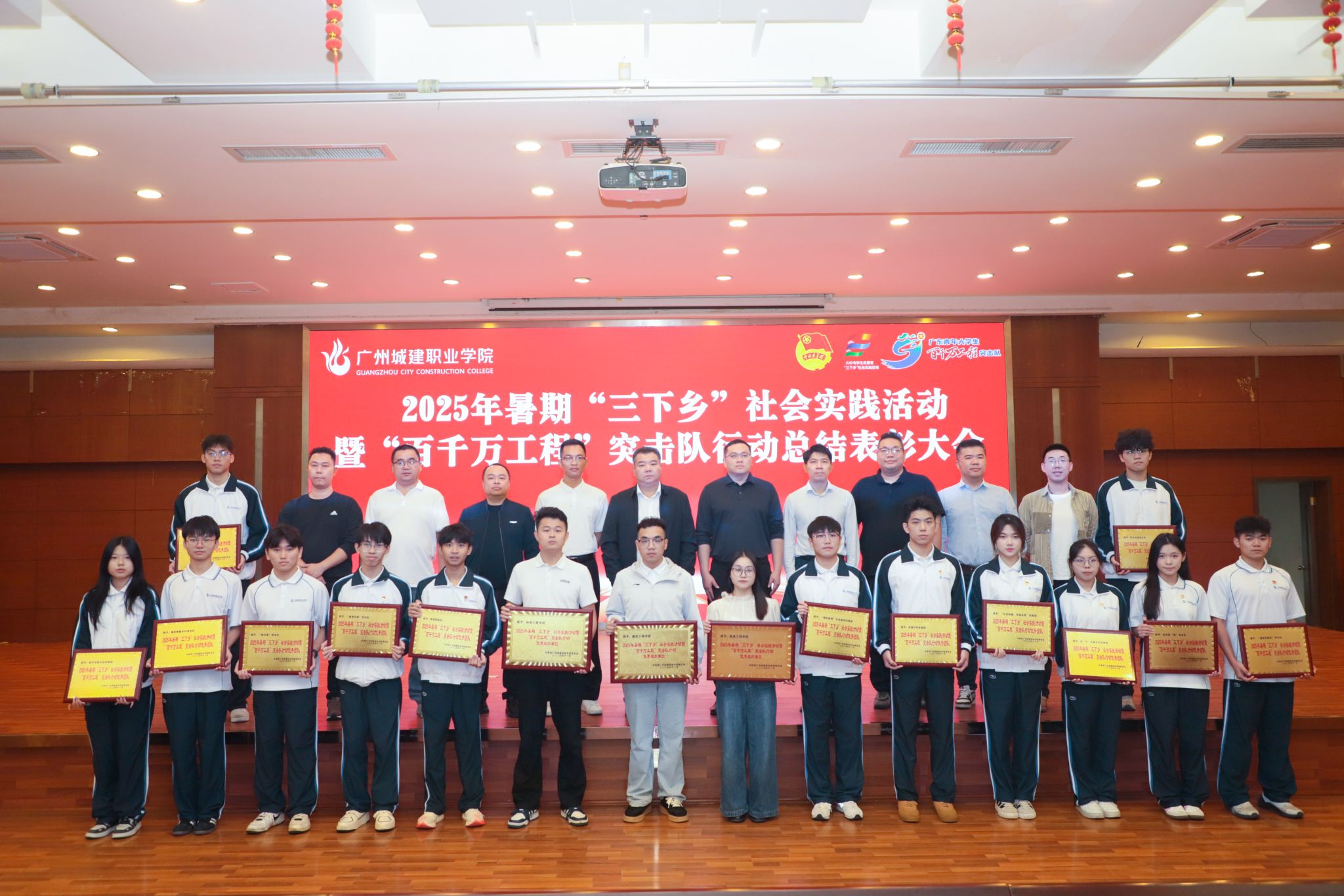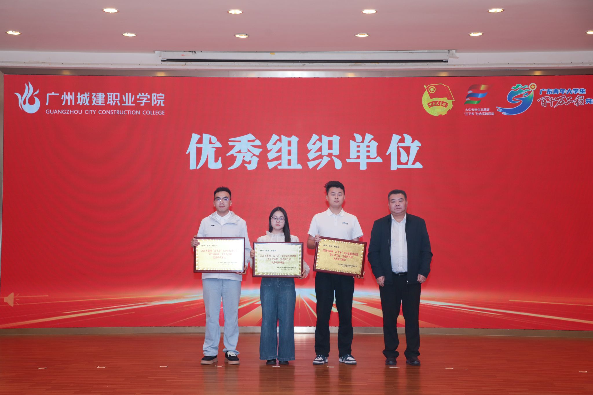 杨清国、张双分别宣读《关于表彰2025年暑期“三下乡”社会实践活动暨“百千万工程”突击队行动先进集体和个人的决定》,并希望受到表彰的集体和个人珍惜荣誉、再接再厉,充分发挥模范引领作用,带动广大城建学子为广东在推进中国式现代化建设中走在前列贡献磅礴青春力量。