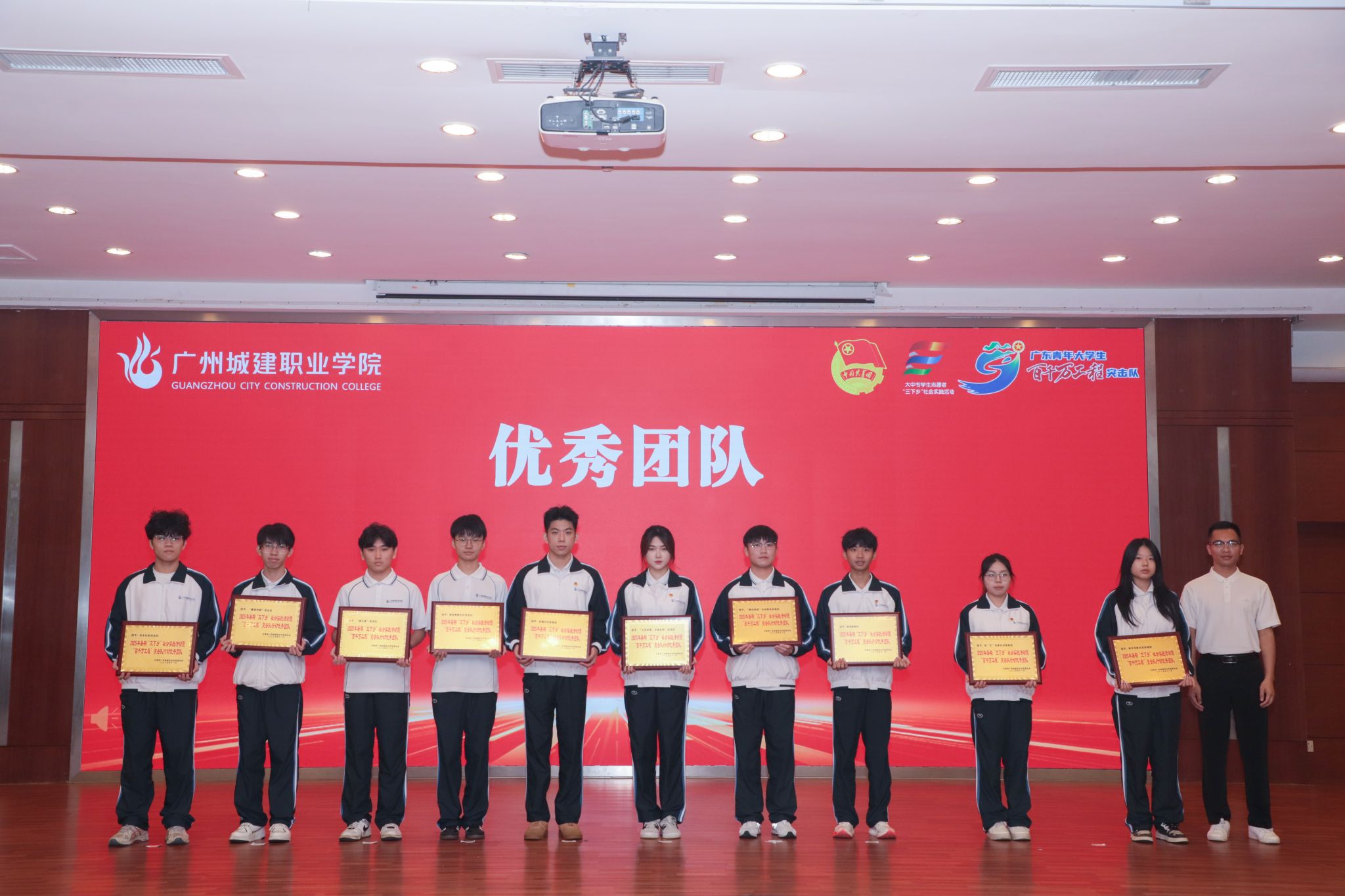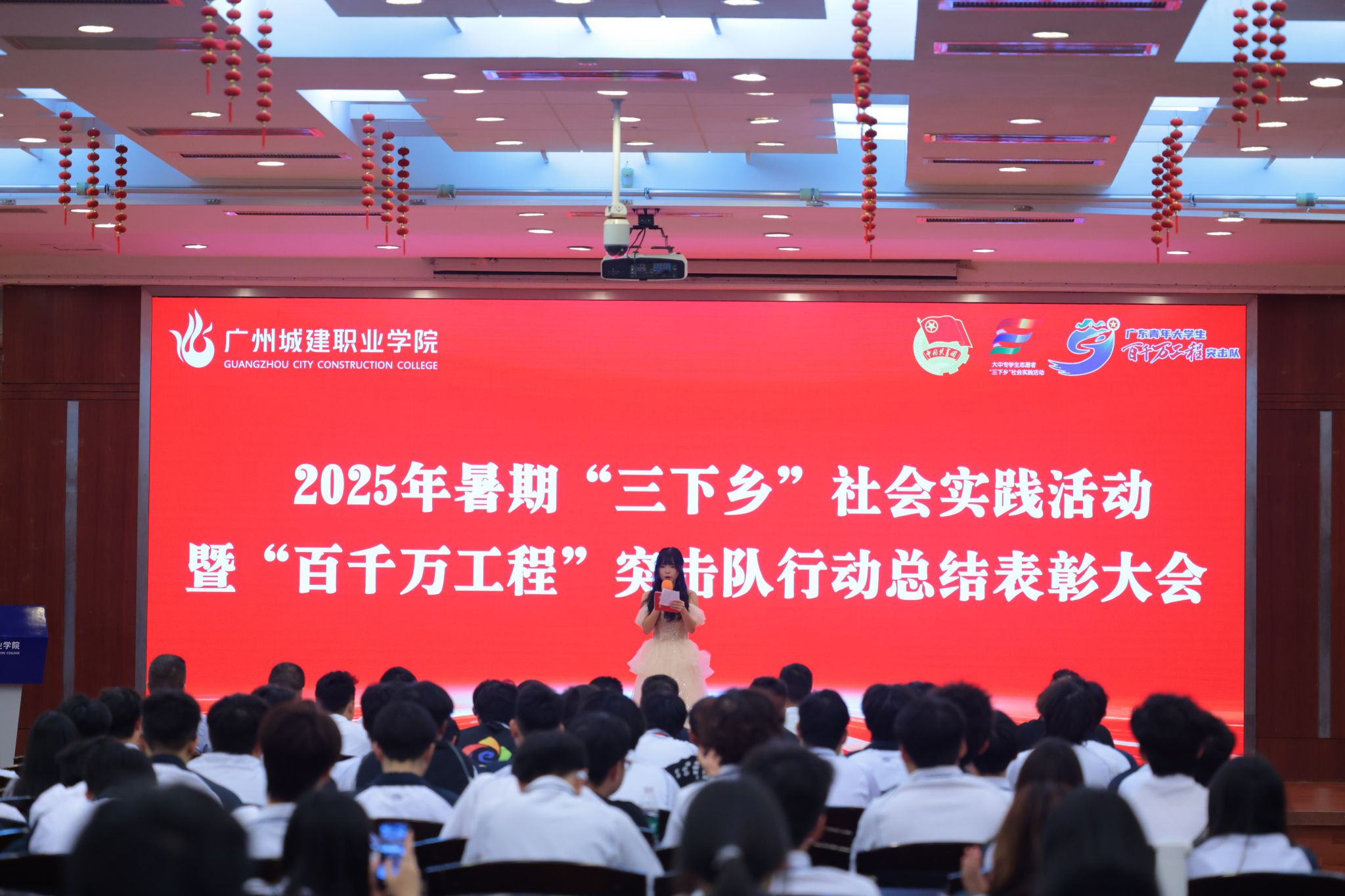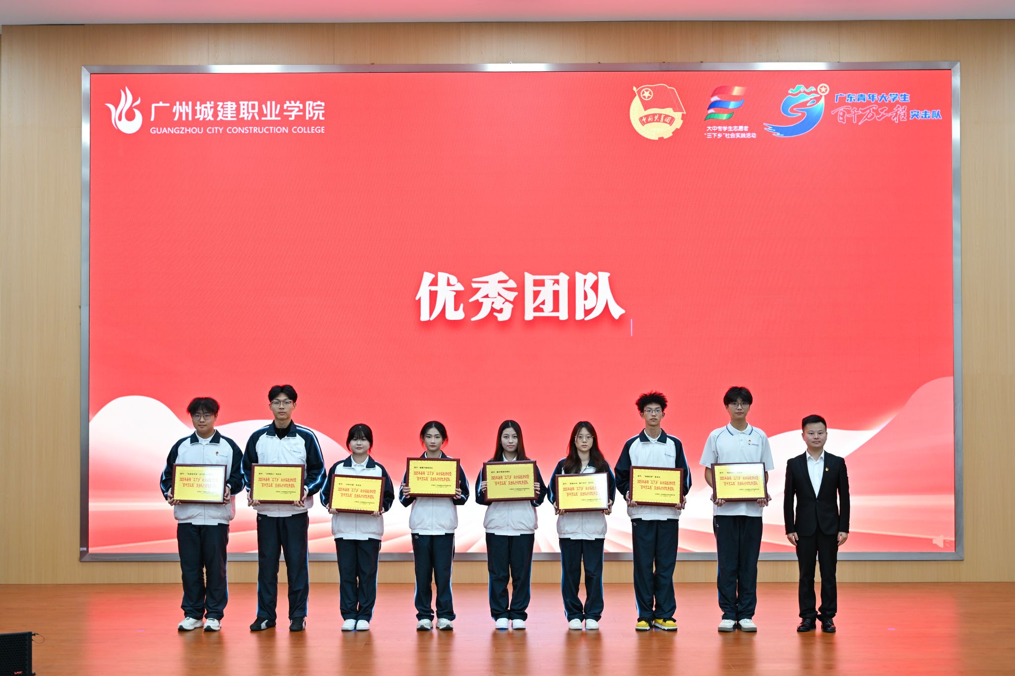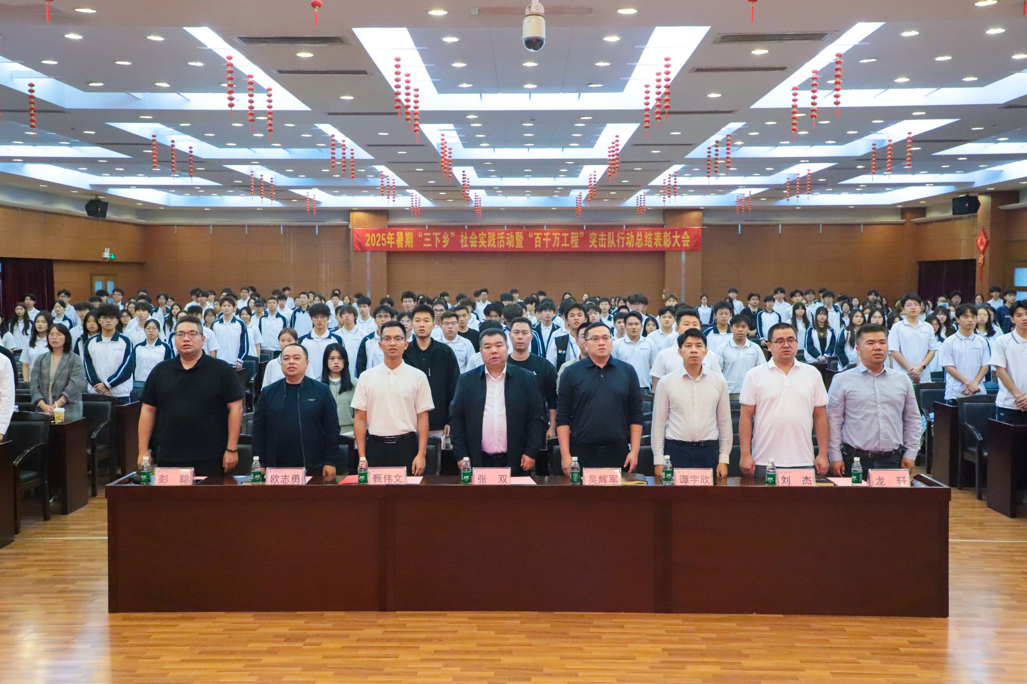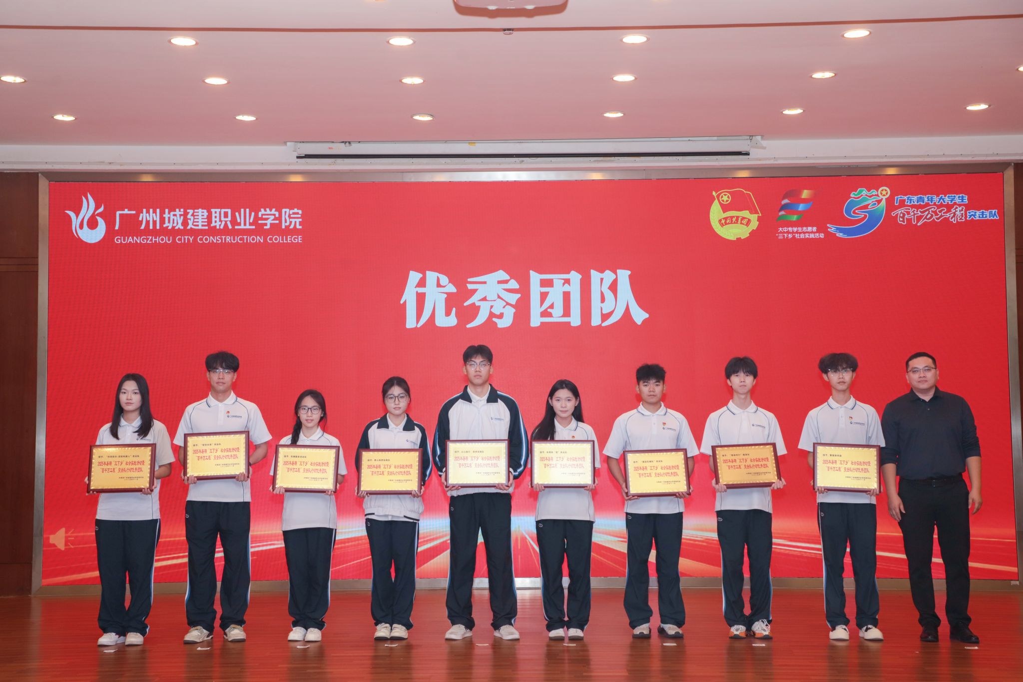 杨清国、张双分别宣读《关于表彰2025年暑期“三下乡”社会实践活动暨“百千万工程”突击队行动先进集体和个人的决定》,并希望受到表彰的集体和个人珍惜荣誉、再接再厉,充分发挥模范引领作用,带动广大城建学子为广东在推进中国式现代化建设中走在前列贡献磅礴青春力量。