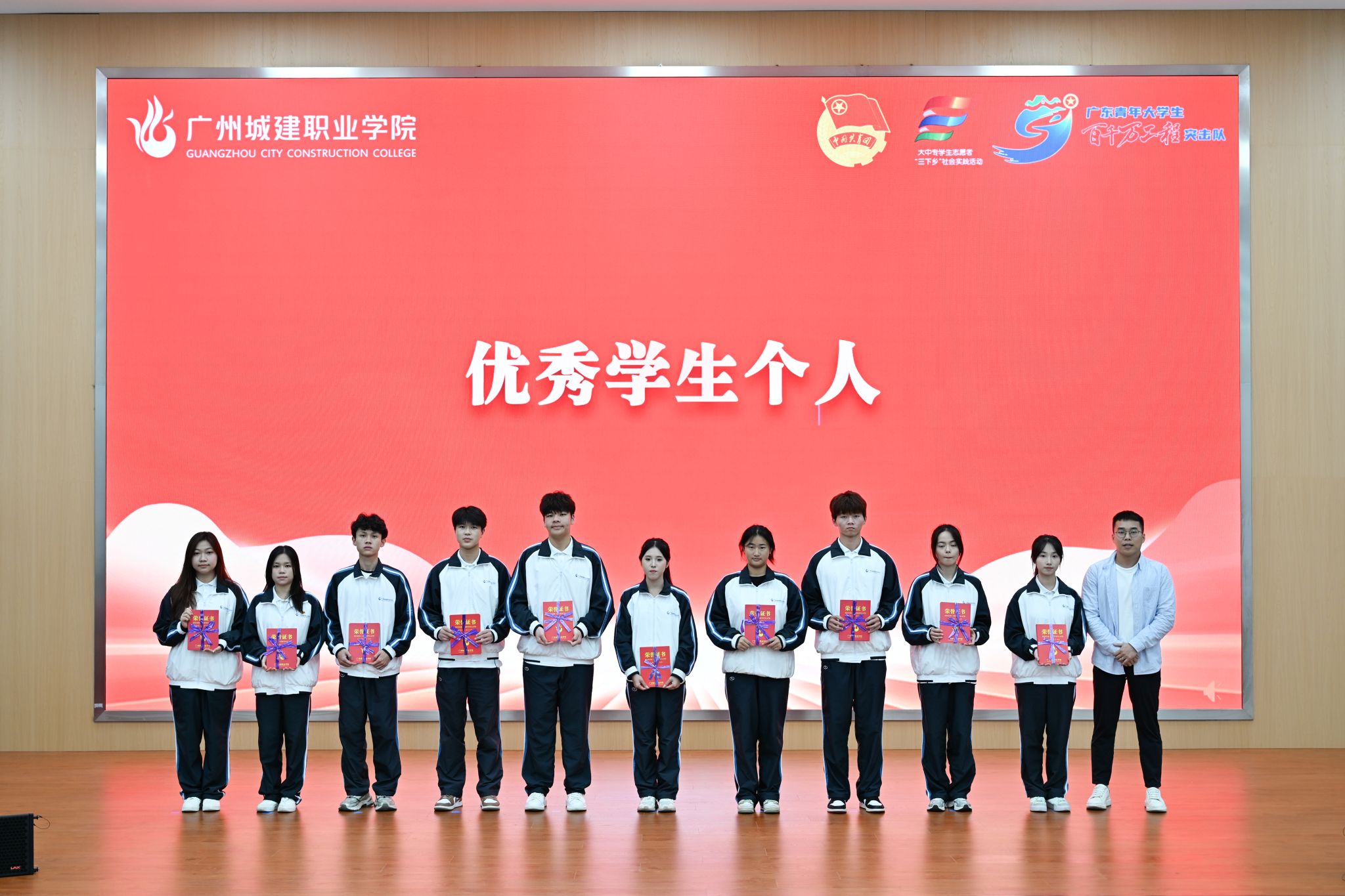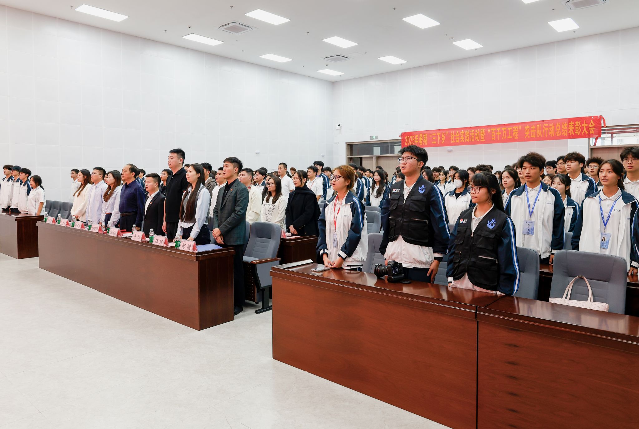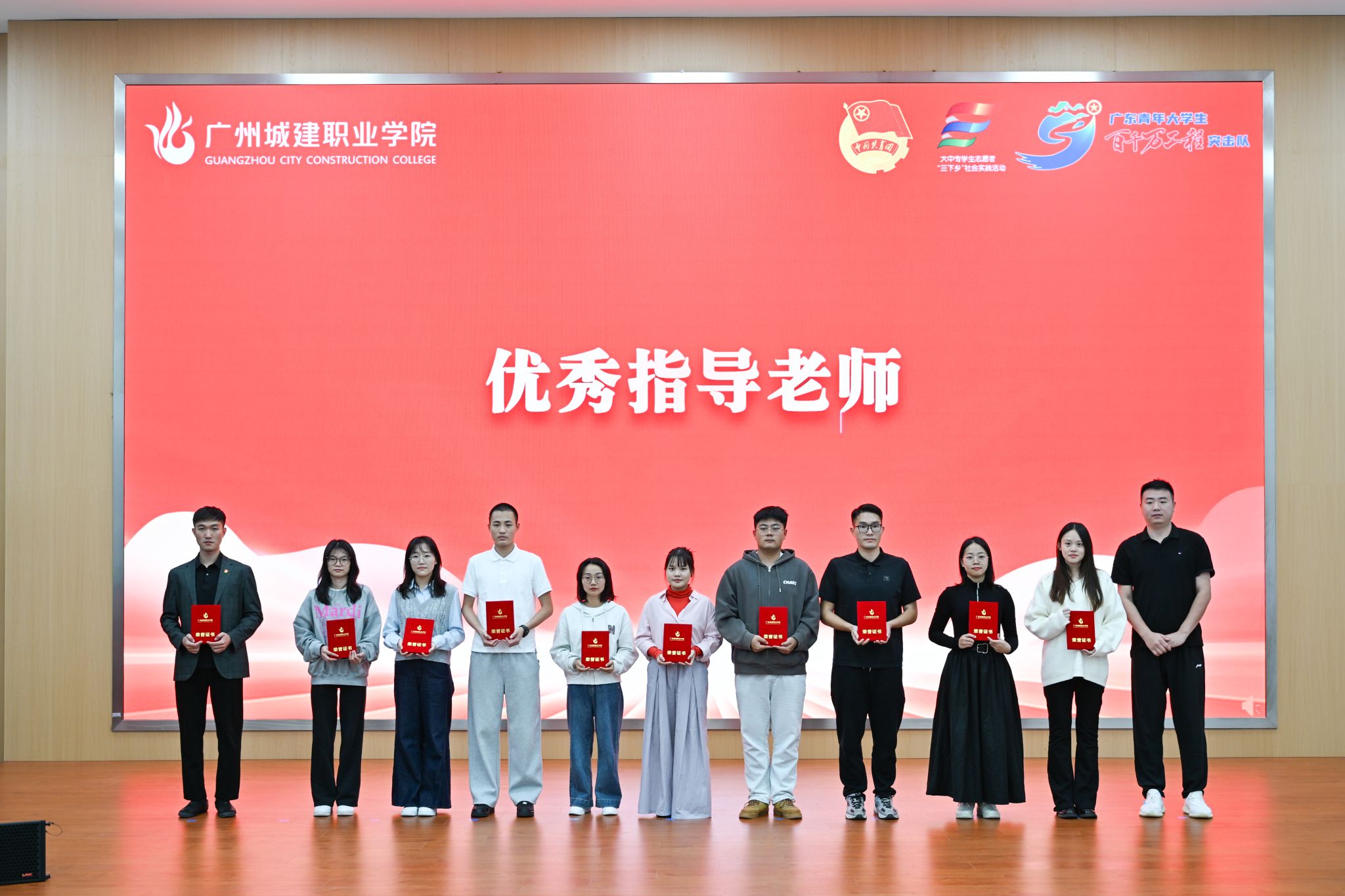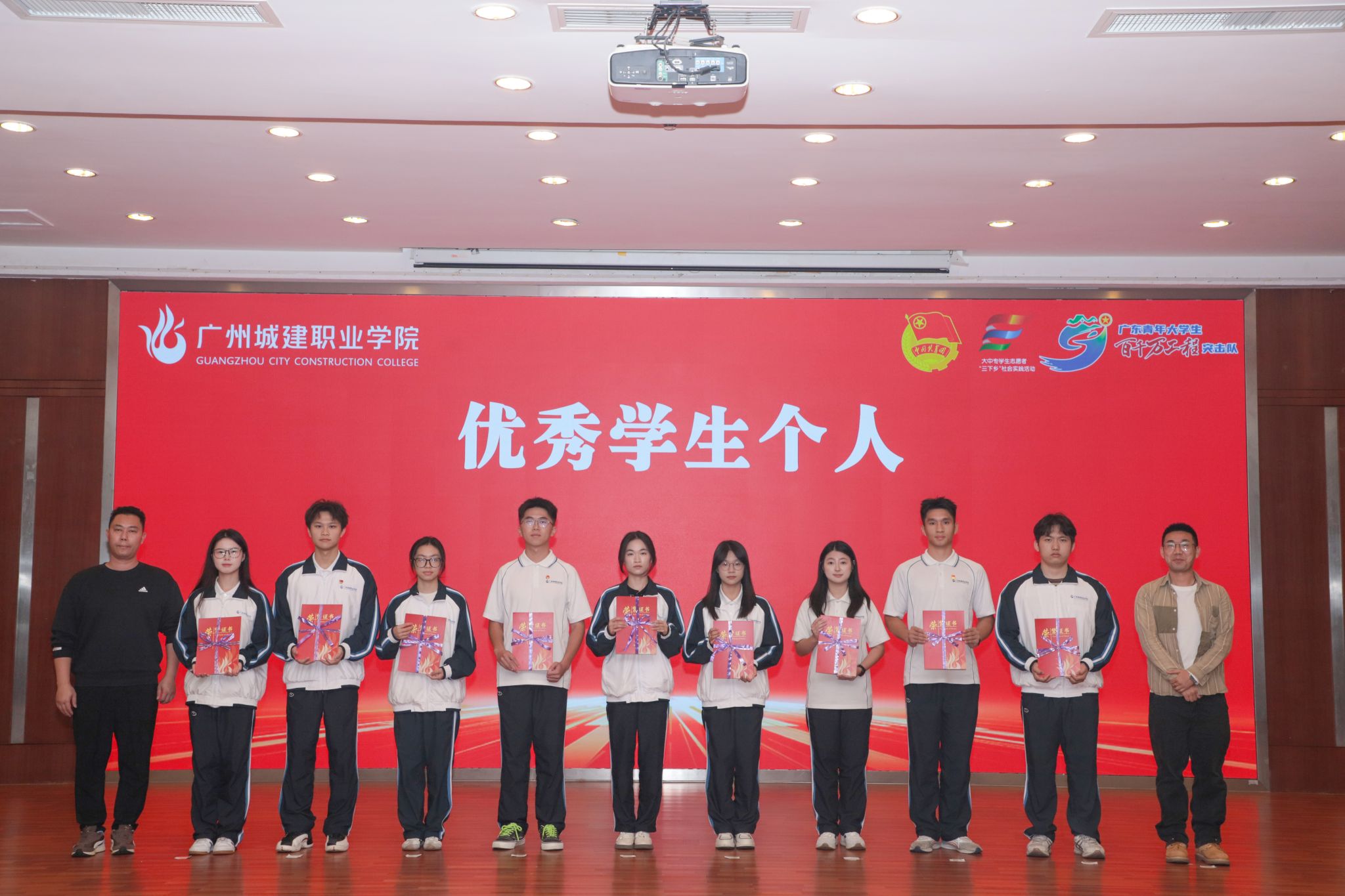 杨清国、张双分别宣读《关于表彰2025年暑期“三下乡”社会实践活动暨“百千万工程”突击队行动先进集体和个人的决定》,并希望受到表彰的集体和个人珍惜荣誉、再接再厉,充分发挥模范引领作用,带动广大城建学子为广东在推进中国式现代化建设中走在前列贡献磅礴青春力量。