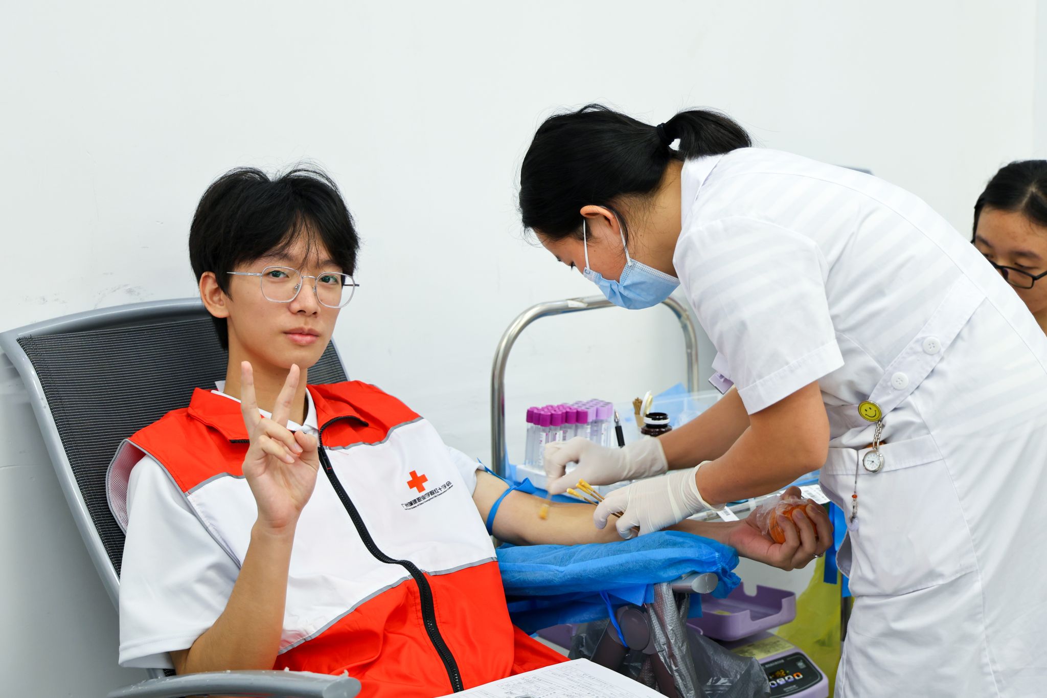活动当日,校园内爱心涌动,各学院学子积极响应号召,踊跃投身于这场温暖的生命接力之中。我校红十字会组建专项服务团队,全程提供细致周到的现场支持。在采血区内,医护人员与志愿者协同配合,引导同学们依次完成登记填报、健康检查、血液初筛等环节。整个流程衔接紧密、高效规范,既有条不紊,又充满温情。不少同学在献血后表示,能以实际行动为社会贡献一份力量,感到无比自豪。