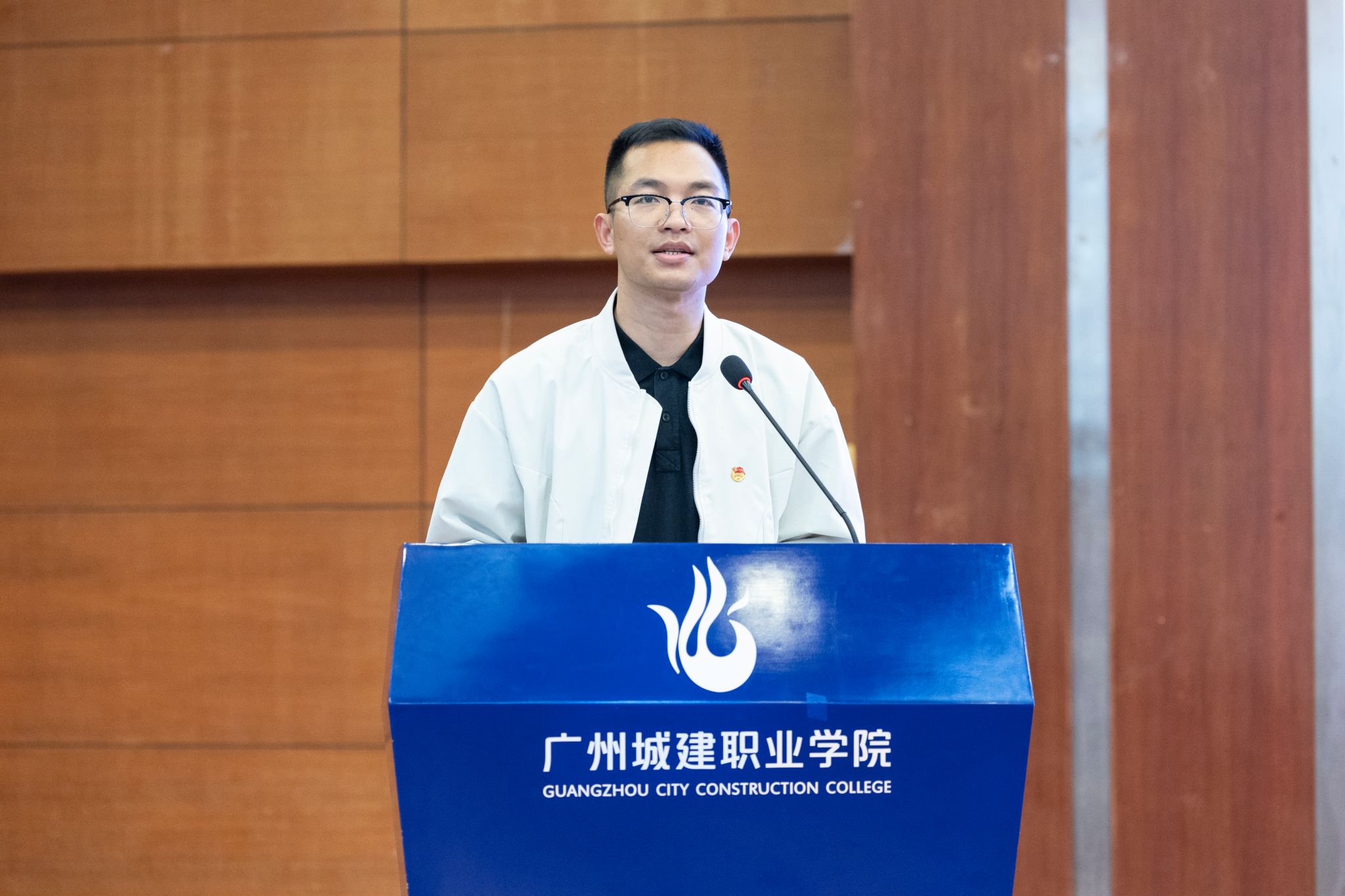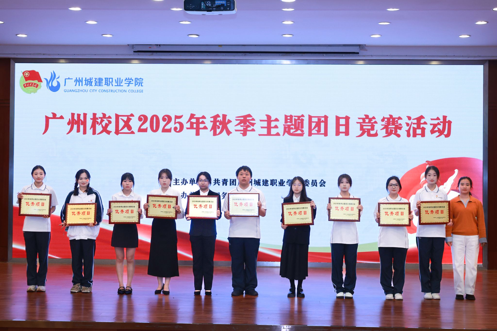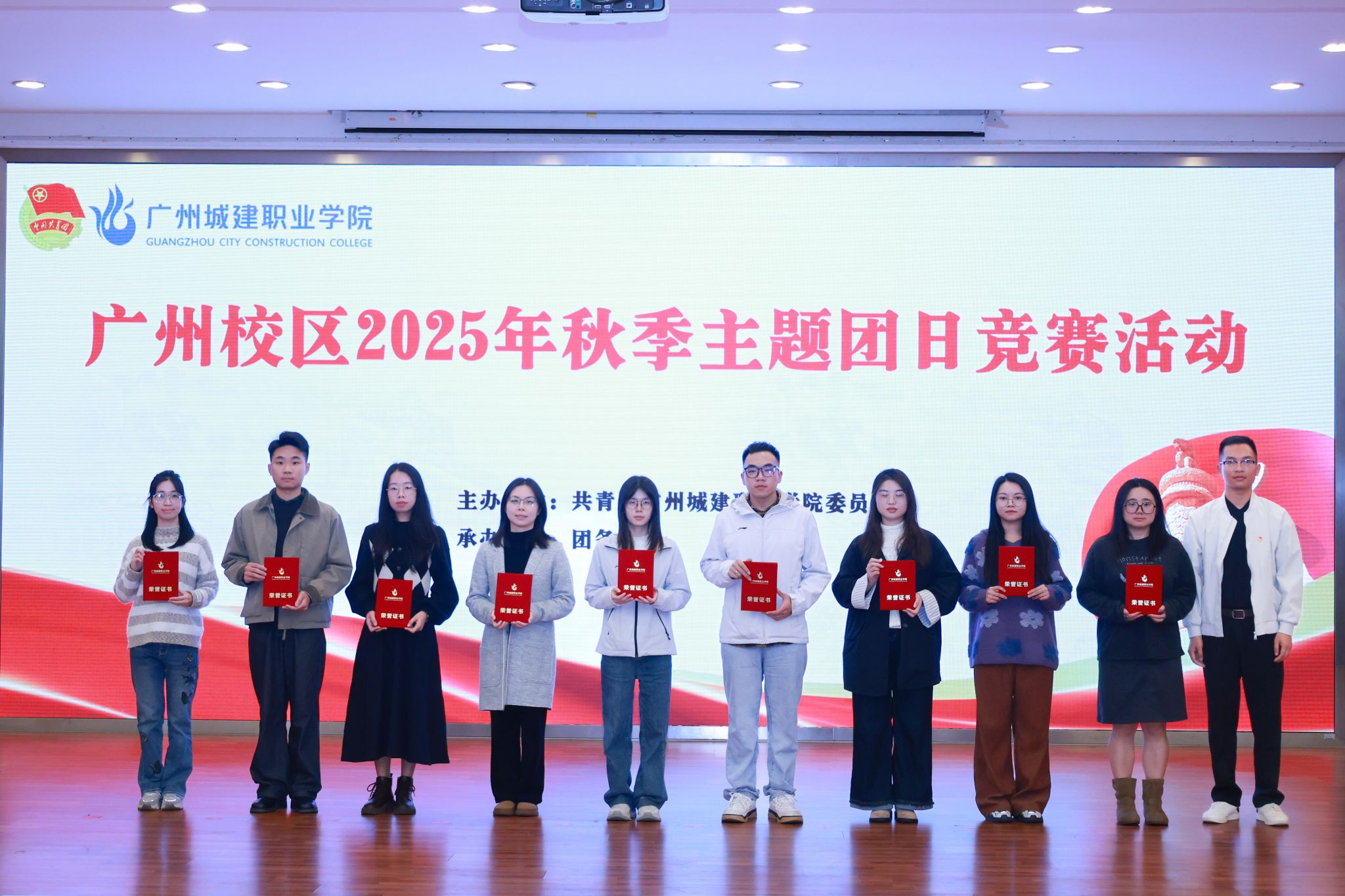12月12日下午,我校广州校区2025年秋季主题团日竞赛活动决赛在人文艺术楼四楼报告厅举行。校团委书记兼党委学生工作部副部长甄伟文、副书记黄得珠、专职团干黄小娥及各二级学院团委书记、辅导员代表和学生代表共同参加活动。