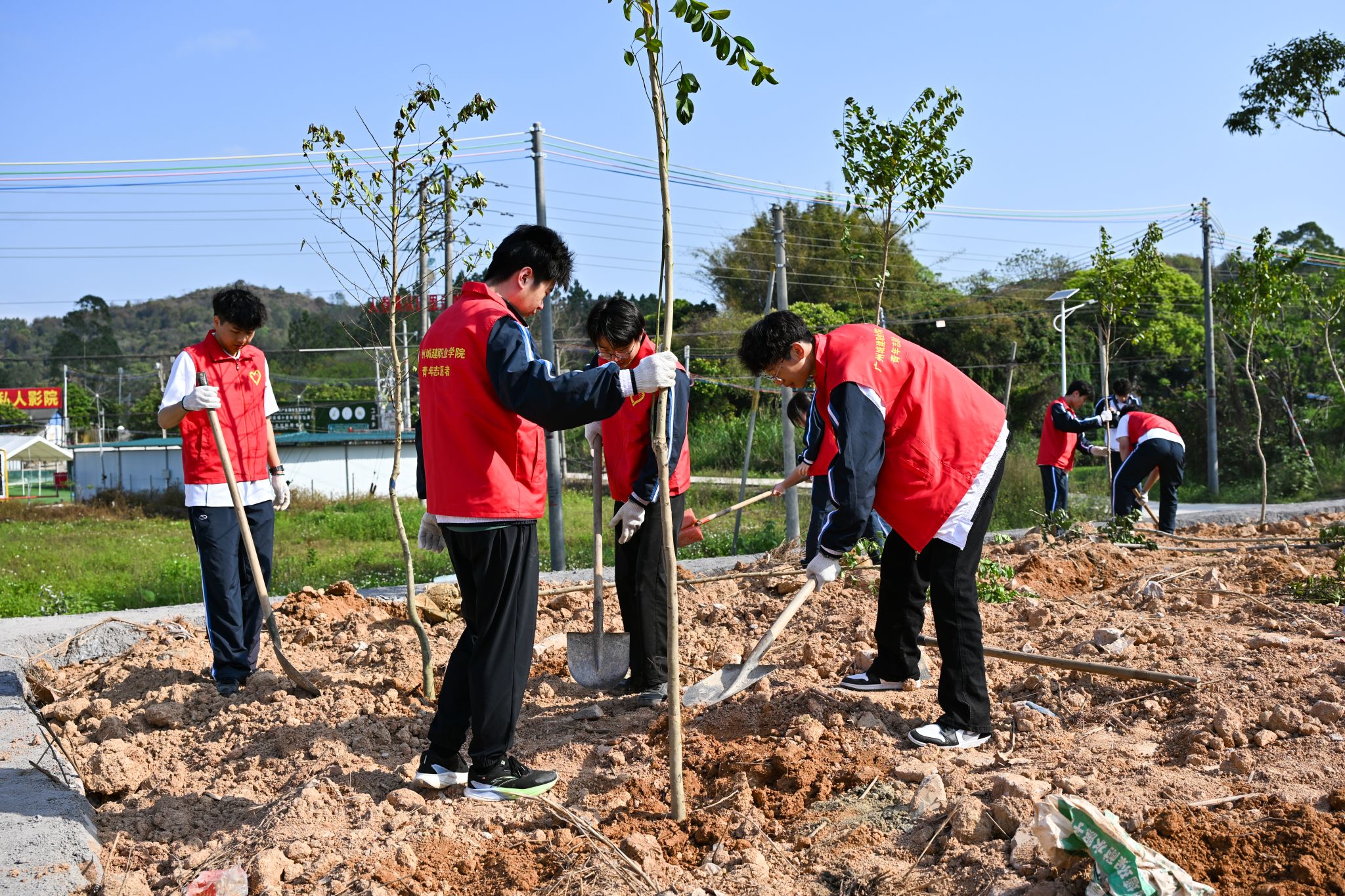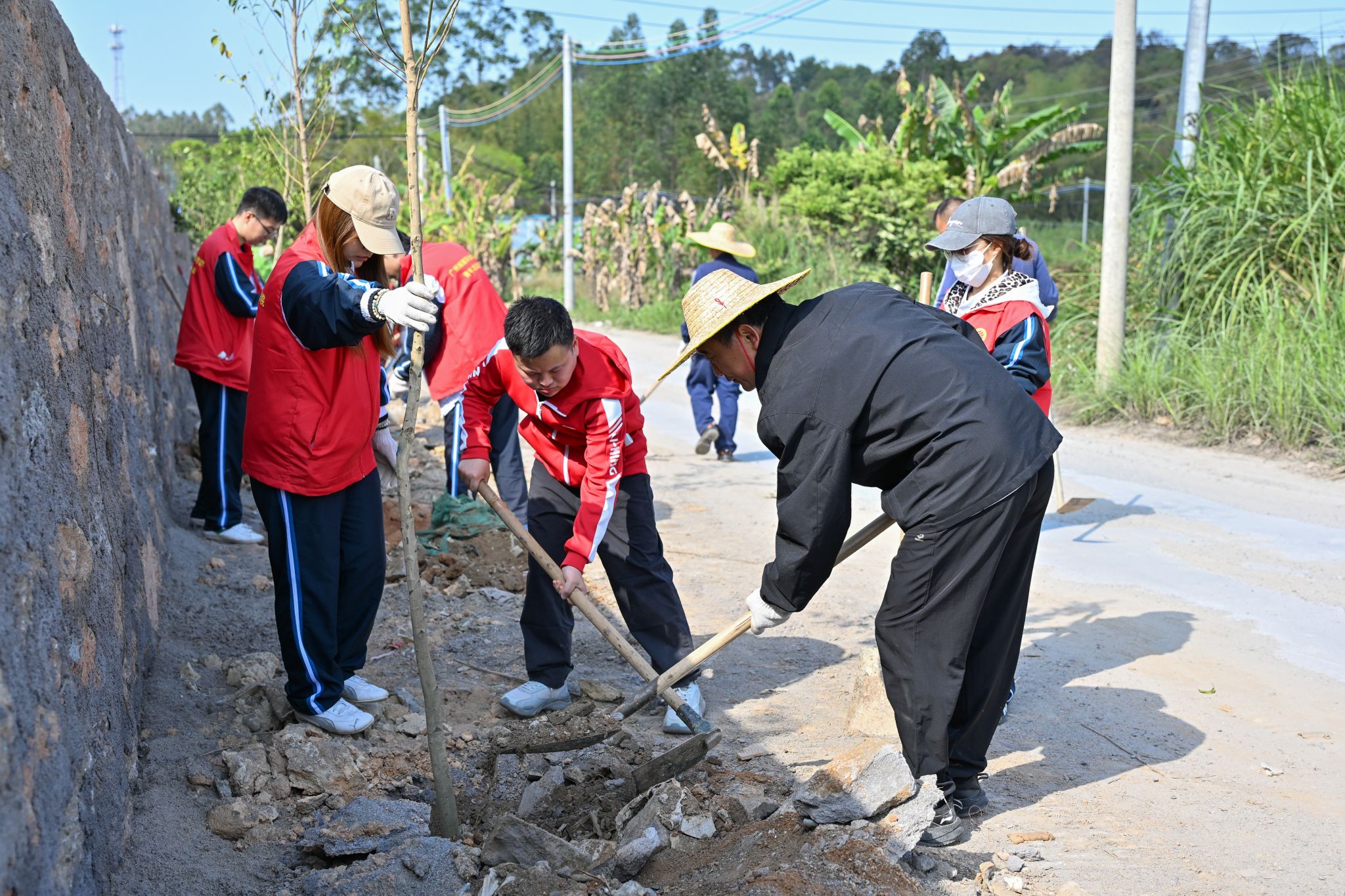 3月17日上午,我校副校长杨清国、党政办副主任吴坚彬、学生处副处长曾德钦、专职团干胡婷携30余名师生参加佛冈县石角镇二七村乡村绿化主题植树活动。