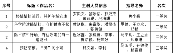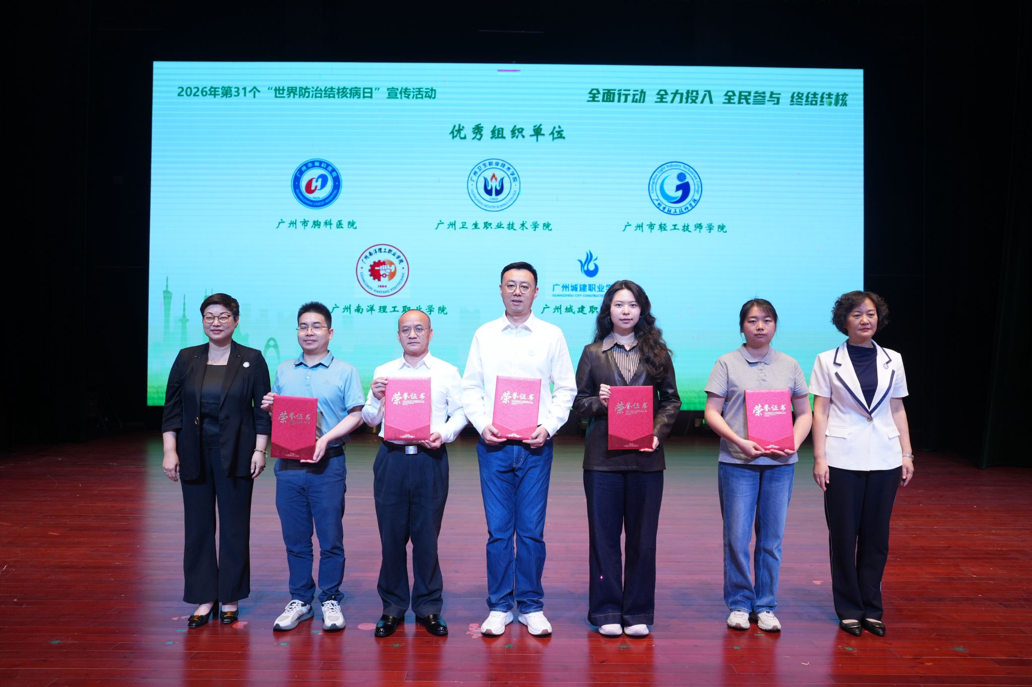 3月24日,2026年广州市“世界防治结核病日”现场主题宣传活动在广州职业技术大学青山湖校区举行,活动现场进行广州市第三届结核病防治健康科普大赛颁奖,我校获一等奖1项、二等奖1项、三等奖2项,获评优秀组织奖。